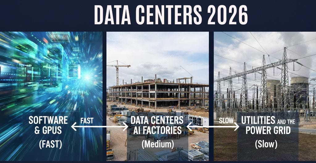 There are three layers of the AI economy, and they are moving at different speeds. In 2026, the big stories in the data center sector will be driven by how major players navigate the tension and timing between these layers.